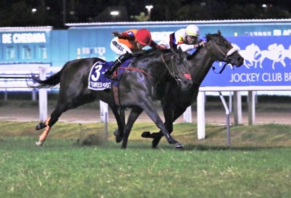 Superando su gran esfuerzo en el Grande Premio Estado do Rio de Janeiro (G1, Gavea, 1600m, grama, febrero/01), donde cayó 2° a medio cuerpo, el potro que entrena el consagrado LUIZ ESTEVES logró imponerse por cabeza en el GRANDE...
